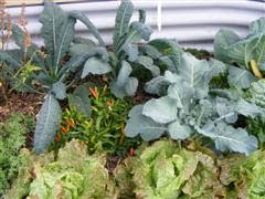 The other low children's bed has been planted with some leftover Brassica and Parcel seedlings along with some Tree Onions (Walking/Egyptian Onions) which should provide some interest later in the season when these plants flower with their tiny onions instead of petals!!There will be a quick Working Bee